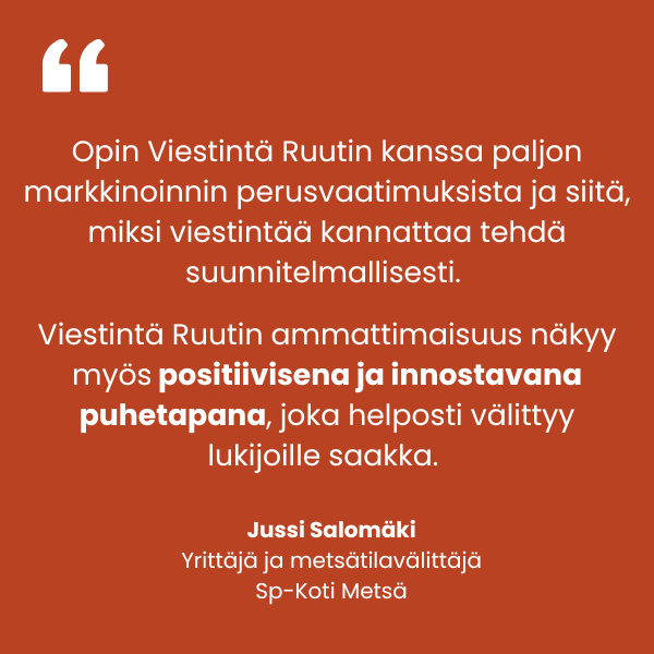 Niin Sp-Koti ketjun kuin itsenäisten yritysten markkinoinnin strategiaan on kuulunut sekä orgaanisen sisältömarkkinoinnin että maksetun mainonnan toimenpiteitä Metan kanavissa ja LinkedInissa. Myös erilaiset verkkosivusisällöt, kuten sisältö- ja laskeutumissivut ovat kuuluneet tuottamiimme palveluihin.